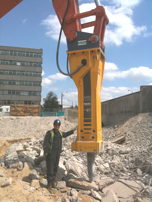 Despite the immediate area having been earmarked for regeneration since the late 1990s, the recent extension of the Crossrail scheme to Woolwich has provided renewed impetus for the redevelopment scheme which will include building a supermarket, 1000 flats and Greenwich council's new civic offices on the site where Peggy Middleton House once stood. 777 Group was given just eight weeks to break-out and recycle the building's foundations; a task which proved more challenging than it sounds according to 777 Group's Business Development Manager Daryl Pearce, "During our initial examination of the site it was difficult to tell the depth and strength of the building's concrete foundations. These unknowns, coupled with a time restriction for completing the project, meant we had to deploy our machines and operatives en-masse at the site. Suffice to say, it was a good job we have the in-house capability for such undertakings as the foundations have proved tougher and deeper than first thought".